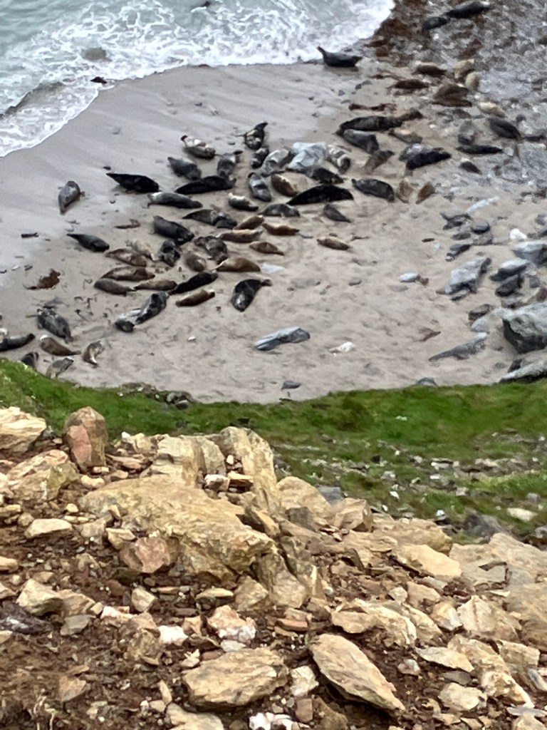 After a good rest at Loggans we were packed into Tom’s car, where Otto was waiting in the back seat, then returned to the ‘Jam Pot’ at the beach where we ended yesterday’s walk. It was a great morning and we could see the sun was going to join us as we made our way to see the seals. Along the way, Paul, Lizzie, Hugh and Delia joined us for a short time, then Paul and Delia returned to their car, to catch up with us again at Hells Mouth Cafe. The seals didn’t appear to be as excited to see us as we were them and even Otto thought they looked a little ‘sluggish’. At the cafe we bid a final farewell to Paul, Liz and attachments then set off again for Porthtowan with Otto’s Dad, Tom, with us. Now demoted to ‘also ran status’, I took opportunity to practice dialogue again with Carol as the spectacular coastal scenery passed by us. But Carol does not know ‘What What’ language or that we’re all over thirteen billion years old, the importance of everything ending with the sound ‘ee’, that everyone’s weird, that brains aren’t important because some creatures (and some people) get by without ever having to use one, Saints are probably going to get demoted and lead the way to the bottom of the league tables, that one is the only whole number, that you cannot have less than nothing so negative numbers do not exist, that Messy is the best footballer in the world and everyone used to think Grampy was Messy when he was a boy, that Grandma is kind and looks after poor people. I’m so missing that boy’s companionship already!
