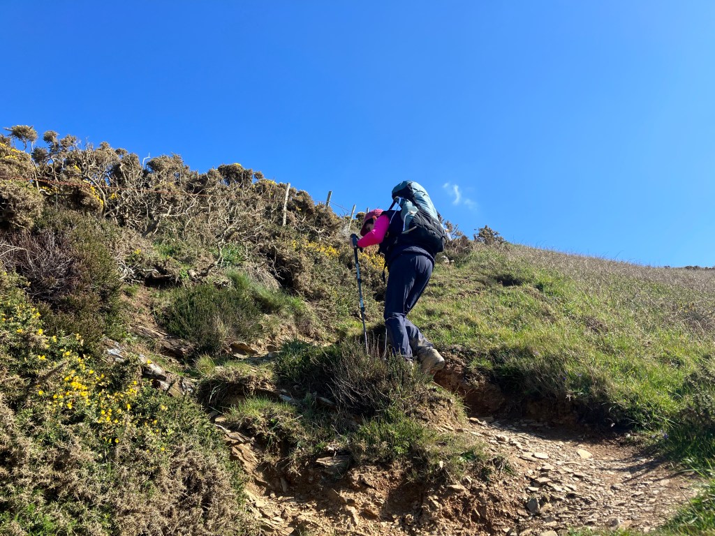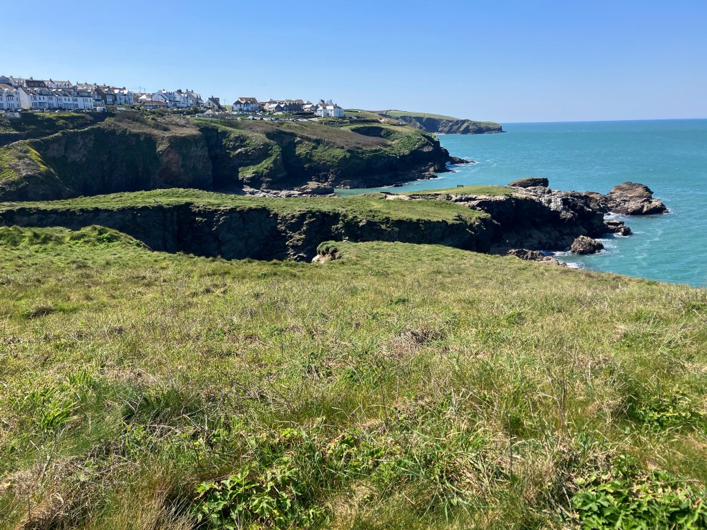 From Wadebridge we set off into the green labyrinth that is the Cornish countryside with King ‘Komoot’ leading the way. He took us across farms, peoples gardens, plowed fields and busy roads. Carol was beginning to loose confidence in his directions and I was beginning to appreciate his sense of humour, which crescendoed when entering a field with a lake sized puddle in it. Straight ahead for 800 feet he said without a hint of irony in his voice. The geese and swan looked as surprised to see us as we were to see them, but they looked a lot happier about the situation than did Carol. The AI guy was smartly turned off and when after about twenty minutes of splashing around mother goose and family I found a way out through deep undergrowth on solidish ground, Carol said something I’d never heard her say before “well done David”. We pushed on into Mordor where the distinction between path and stream was impossible to tell. Every crossing from one field into the next meant descending into a dirty ditch of squelching cow dung and mud and having to climb unassailable stiles. Then through thorn bushes slipping and sliding all the way, when suddenly without any warning, onto a beautiful green slope carpeted with daisies sprinkled with buttercups. It was like we’d stumbled into the very presence of Christ Himself and He could have been sitting there making daisy chains smiling at the arrival of His two weary travellers. A very happy place but feelings of guilt over various curses and angry indignation about the route needed to be confessed. His laughter was almost audible and my sudden urge to sing was rapidly picked up by Carol who preserved the moment by insisting we move on. As we moved out of that place I felt a heavy heart had been lifted from me, which had been a greater weight than the bag on my shoulders, and the friendly gaze of those daisies was on our backs all the way to Port Gaverne where lunch and a leisurely three mile coast walk to our lodgings awaited us. As usual I am right about some things but wrong about most. The lunch was good (though I did choke on a steak I was gobbling too quickly and a piece of meat caught in my throat – scary! I must get some lessons from my mate Otto who I’ve watched do the same but perfectly safely). However, the coastal walk was six miles and severe climbing up and down for four of them. Sheeeesh….