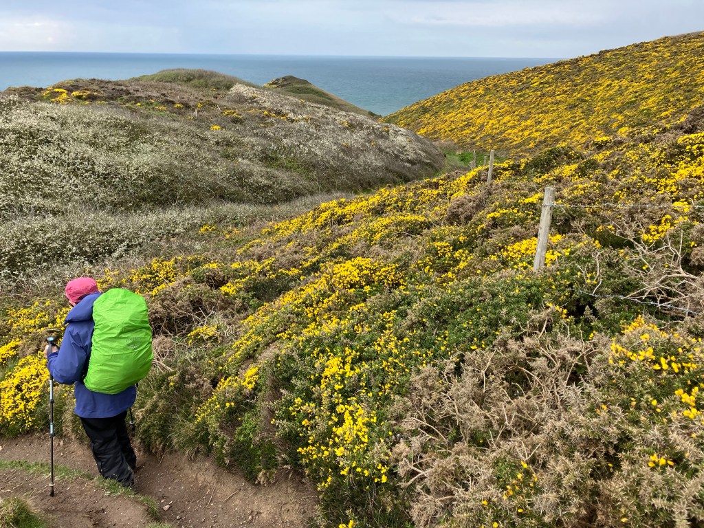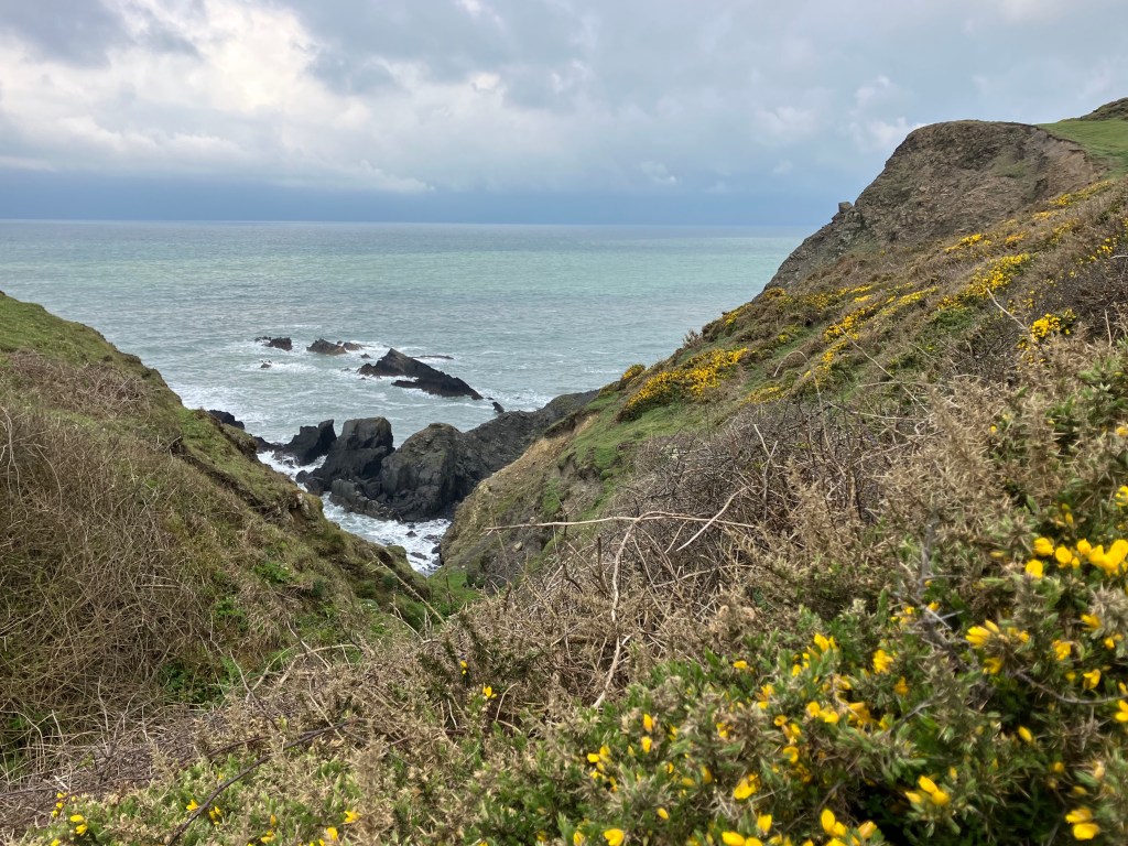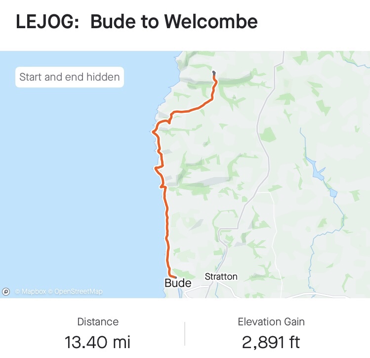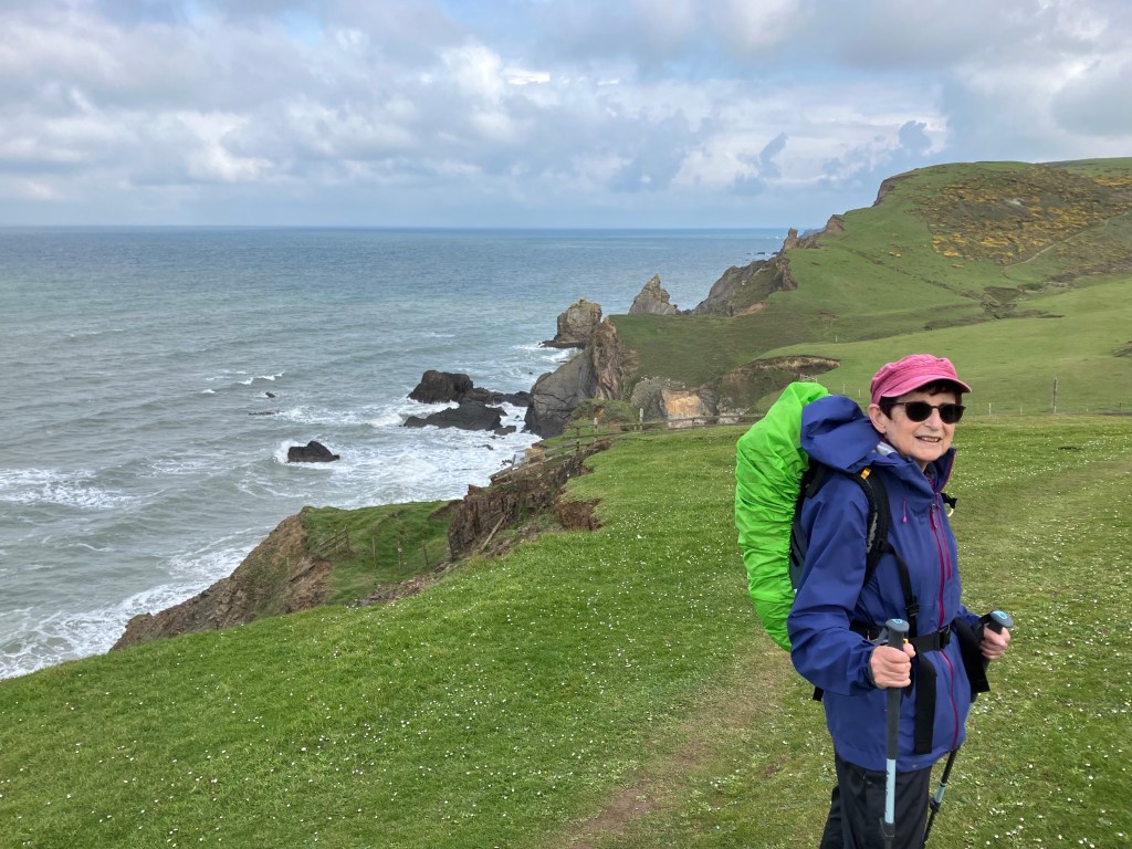 We left Bude in full wet weather gear, having checked the forecast and then decided we had been overly pessimistic, as the sun was shining. However, as we progressed up and down the paths, down came the rain and boy did the wind blow! Fortunately the showers were short lived and we arrived in Morwenstow where we enjoyed a lovely stop at the old tea shop for lunch. Our route then took us through very muddy paths through fields of cows and up and down steep hills until we finally reached the comfort of our B & B. And we have finally left Cornwall and entered Devon!