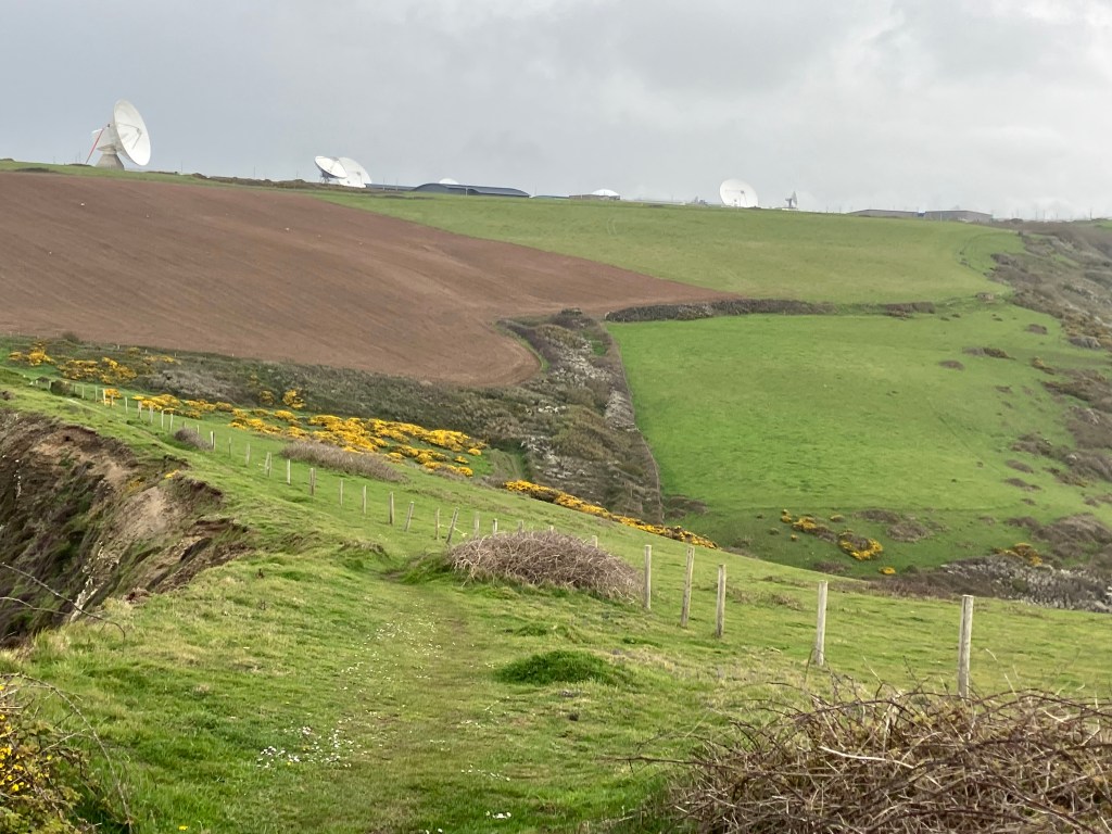After a day’s rest from walking and freshly cleaned underwear, Carol stopped keeping her customary three metres in front of me. It was a pleasant dry, cold but not too hilly stroll along the cliff tops so time and miles just slipped past. We had the large white radio dishes of GCHQ in front of us as we headed North. This is where government eavesdrop on telecommunications, mostly Russkies probably but I reckon they’ve Johnny on their radar too. As we got close to the dishes, wet windy weather returned and we were climbing again until a long descent into Morwenstow, and lunch at the Rectory Farm Tea Rooms (a 13th century farm house). The vicar there Robert Stephen Hawker (1803 – 1875) was a character by all accounts. Smoked opium, wrote poetry (friend of Tennyson), refused to wear the regulatory clergyman attire, enjoyed a good joke (dressed in seaweed on the beach to bemuse his parishioners), and the only views he readily shared were those of the cliffs and countryside around him. A grown up version of Otto in fact – but I’d keep off those poppy seed rolls if I were you mate. The last mile of the day is always the longest and today’s was a very steep winding ascent to our lodgings ‘Old Smithy Inn’ and across the Cornwall border into Devon. Phew, we made it!