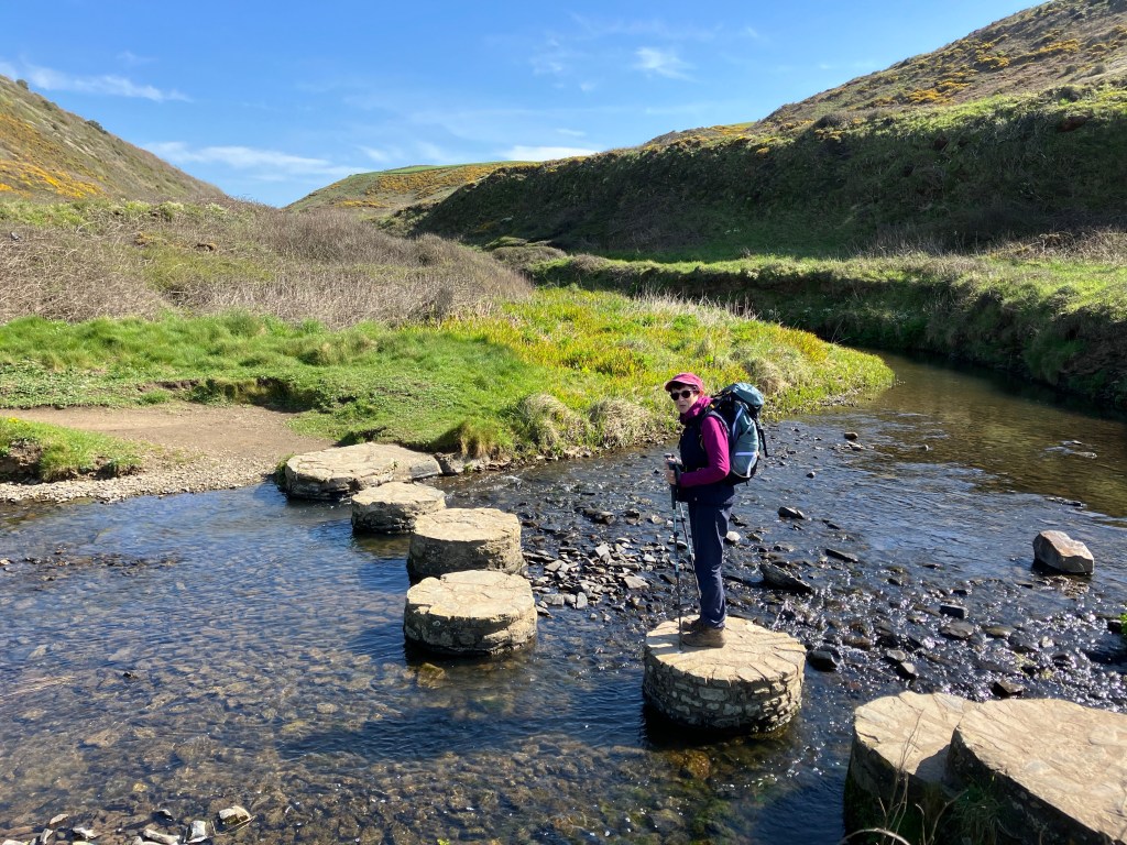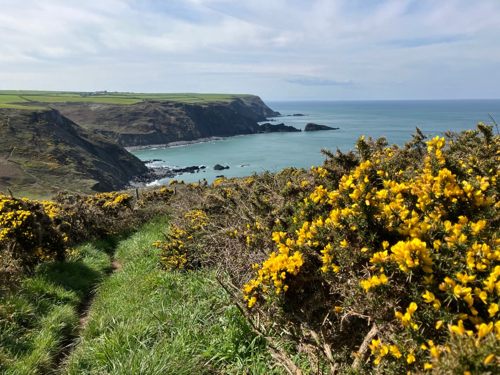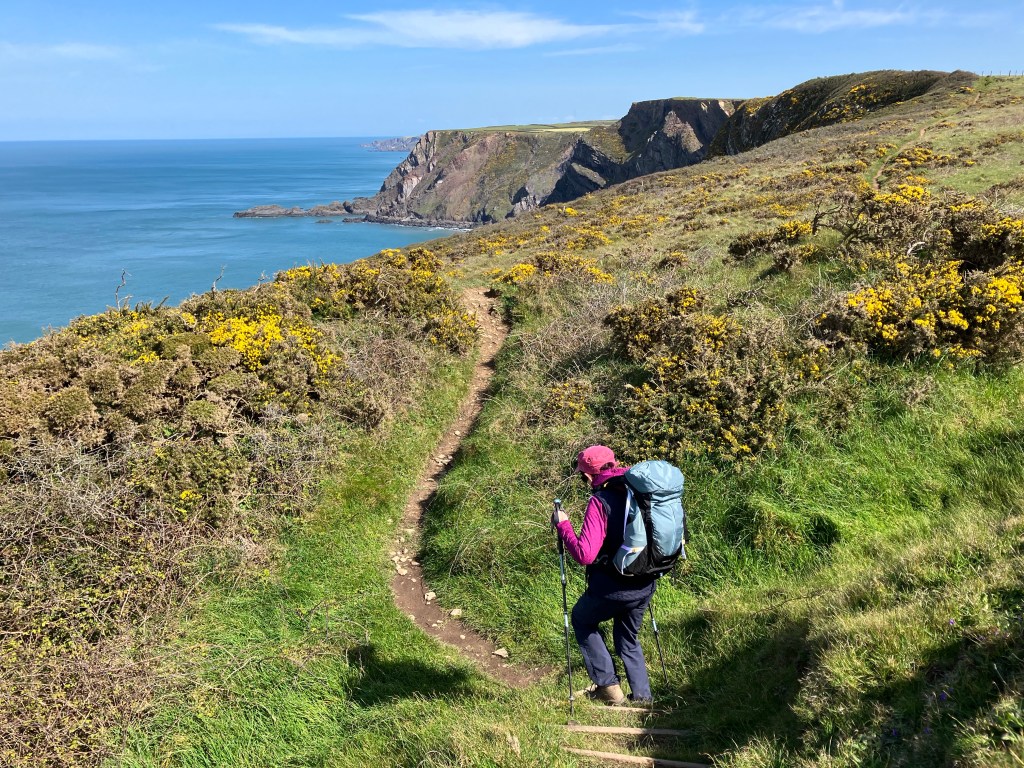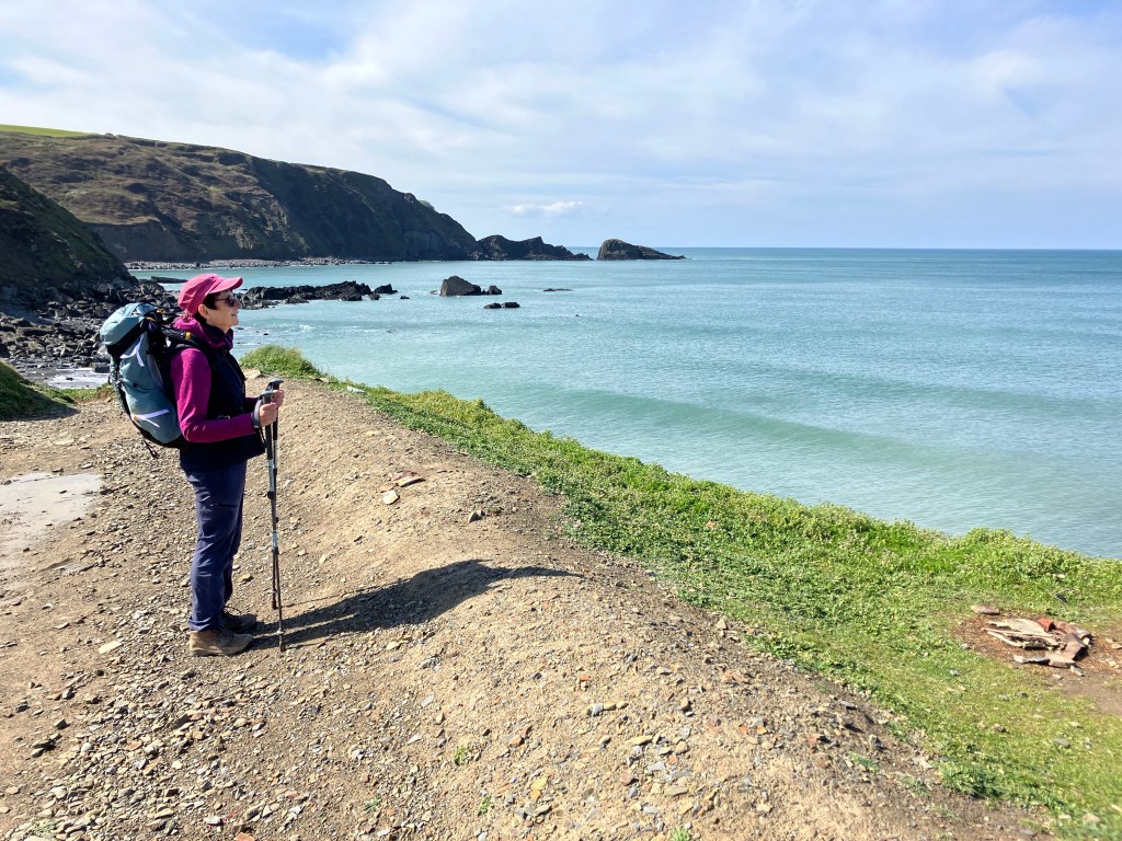 Today was a gloriously sunny day and our walk was less strenuous than yesterday but the views were equally as magnificent. We ambled, taking our time and taking advantage of seats along the way to enjoy the views. When we arrived in Hartland Quay, there was a car park and nothing else (or so we thought) and our Komoot App directed us towards the village – a long climb for about a mile. We then discovered that our hotel was back at the Quay, sheltered below the high cliff! This meant that they had finished serving food by the time we arrived. I wasn’t very popular today!