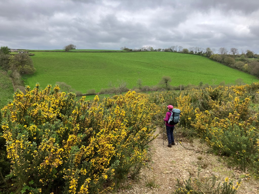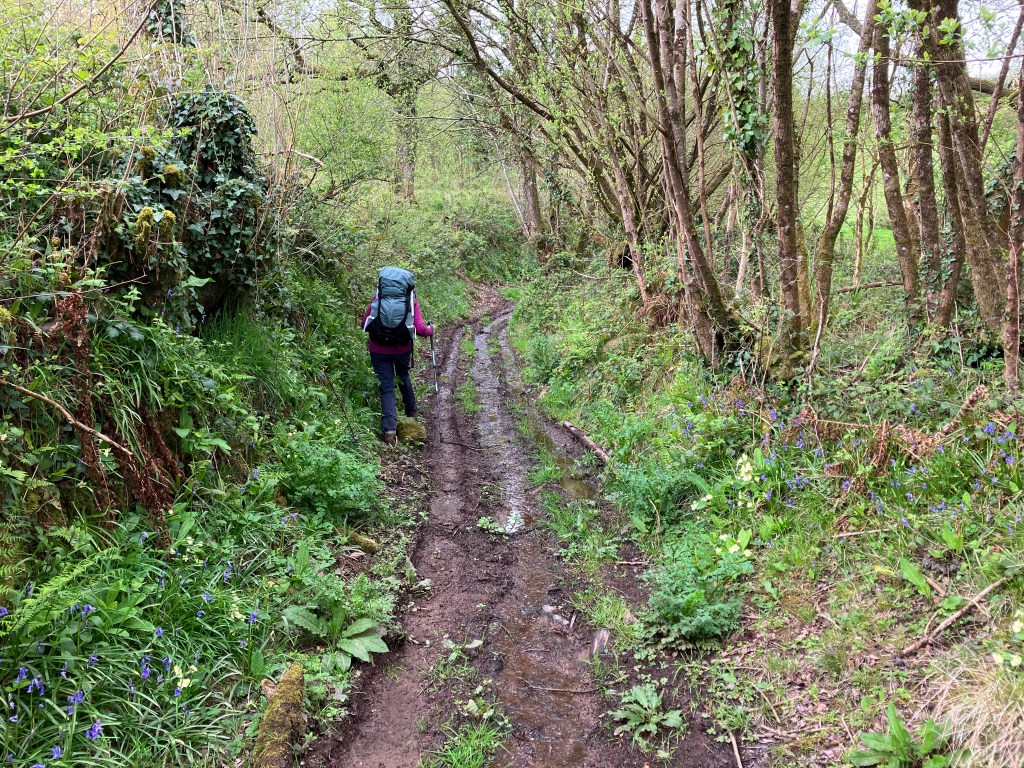 Walking out of Barnstaple was like being a postman for a day, carrying heavy bags up and down roads and lanes, being harassed by dogs, with occasional off piste excursions into fields to avoid traffic. An elderly woman (a year or two older than us that is) stopped her car in the middle of a main road to point out the view behind us we’d just walked through, explained how beautiful it was and how she’d love to swap places with us on such a lovely day (whatever she was on, it was working!). The sounds of the countryside are getting predictable already, crows and magpies in open fields and chirping finches along paths through dense woods. Sea birds are more aloof, but smaller woodland tree dwellers sometimes follow us along the narrow paths hopping from tree branch to tree branch in front of us. We will take more time to be still on our walks if the weather gets sunnier.