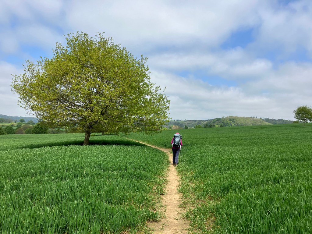 A long day today, starting off cold but in the afternoon lovely sunshine. We left our B&B to cross fields and once again found that farmers had planted crops across the public footpaths, or we encountered fields of cows – and a bull – where we needed to cross, and we had to walk the long way round to avoid the impediments! Fortunately the walking became easier, and we were able to enjoy some fabulous views – and less enjoyable climbs up to those views!