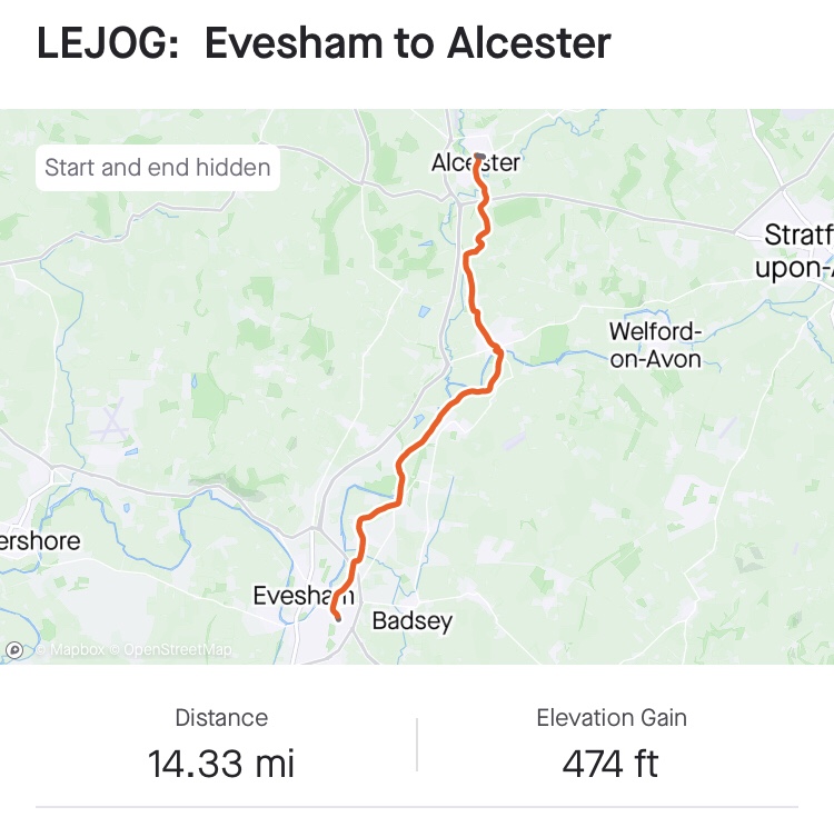 Today’s walk was very pleasant, through the Vale of Evesham, known as the fruit and vegetable basket of England. We walked along lanes and footpaths out of Evesham, passing through market gardens with enormous poly-tunnels, then walked along Shakespeare’s Avon Way, before joining the Heart of England Way. There were few climbs (unless you count the many stiles across fields at almost 100 metre intervals). The only downside today was a stretch of very muddy bridleway.