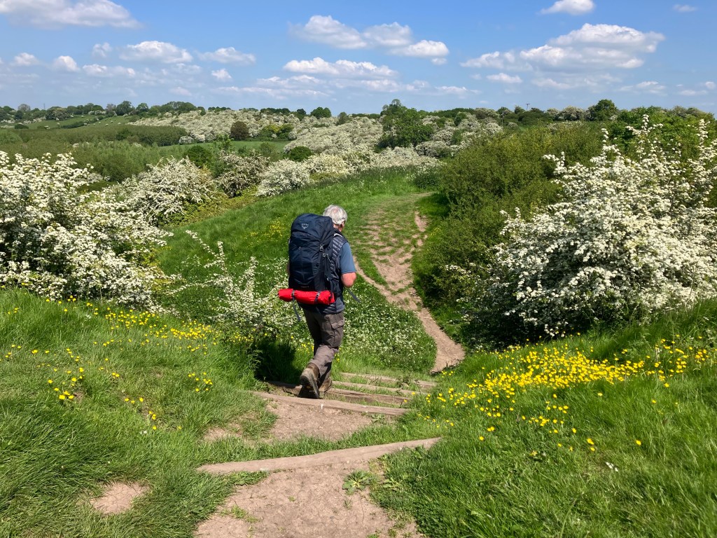 We had a very pleasant walk today on the Heart of England Way, even though it was longer than I would choose. It was not too hilly and the sun shone all day with a pleasant breeze. We were surprised that, other than dog walkers near the town, we didn’t encounter any other walkers on a Saturday in May! We are now in Warwickshire.