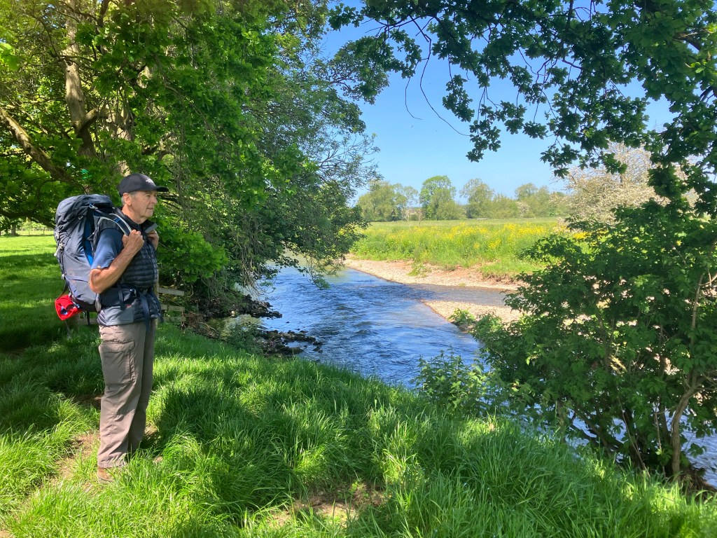 Well, here we go again. More fields, more woods, more mumbling to myself as Carol marches at pace under the hypnotic control of Komoot’s monosyllabic instructions. My role has been reduced to performing the tasks Komoot struggles with: opening gates, shooing cows and procuring pints of orange juice and lemonade refreshments at rest stations enroute. Every night, after planning next day’s route, Carol puts her phone down by the side of the bed then says “good night Darling”. I don’t know anymore if Carol’s talking to me or Mr Komoot. Still, if our roles were reversed we’d be in a right pickle, somewhere in St Ives by now, so mustn’t grumble too much. Today’s walk took us through a ‘Clay Shooting’ club out in the middle of the countryside. It was like being at a major firework display with all the noise and none of the sparkle. Now, I believe it’s possible to put a ‘silencer’ on any fire arm including shotguns, but I didn’t see any on the guns I saw being carried. Why suppressors aren’t used beats me, they reduce noise pollution, eliminate need to protect ears, reduce recoil, help concentration, don’t reduce power, range or accuracy – it only makes sense. I would have discussed the matter with them, but arguing the point with blokes all holding the ultimate silencer over their shoulders may have been a tad too zealous. We walked through and past many fields of sheep and lambs today, which was a perfect contrast to the shooting range. In the natural world all sounds are drenched in meaning and not at all a violation to the ear drums (except my snoring by all accounts).
