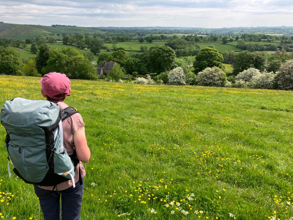 We left our accommodation following the Limestone Way, initially over farmland. The fences and hedges of Staffordshire are replaced by the drystone walls of Derbyshire, and stiles are largely replaced by V-shaped gaps in the walls – not easy to get over if you are short and carrying a large rucksack!