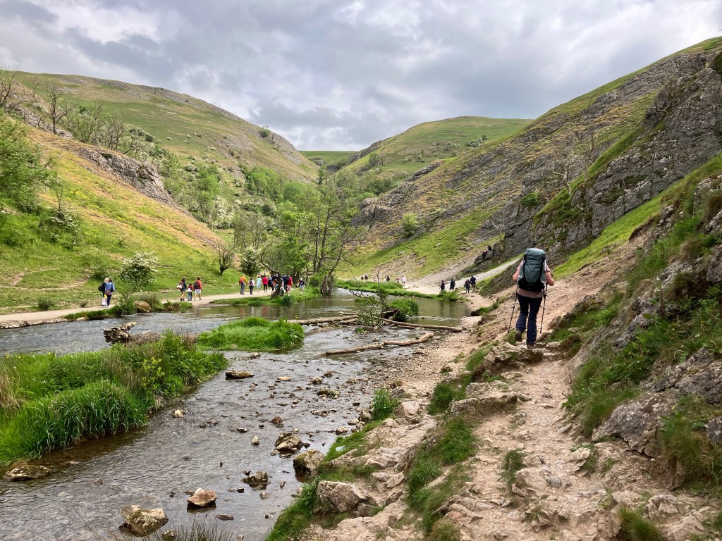 Soon we reached the River Dove, following it into Dovedale, a particularly beautiful stretch of river. However, on a Bank Holiday weekend, the world and his wife had chosen this as their picnic destination! It was the first time we had become ‘tourists’ and although it was lovely to see so many families enjoying the sunshine and scenery, we were pleased to find that when we took a steep uphill path out of the valley, we were once more on our own!