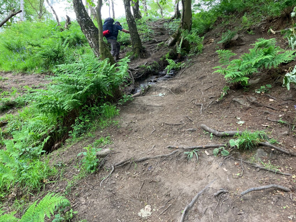 We had a very steep climb out of Bakewell, through woodland and into pasture. The path gradually descended to the Chatsworth Estate, where we then followed the river Derwent for most of the way to the pub we were staying at for the night, The Chequers in Froggatt. We had hoped to stop in Baslow for lunch, but once again the pub was closed, so we settled with seats outside a small village shop!