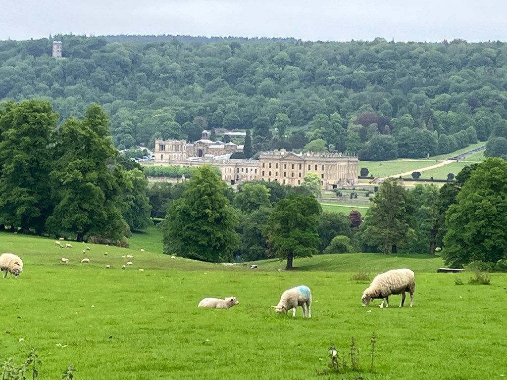 On leaving our digs today we bumped straight into our favourite sock shop, ‘Cotswolds’. Unfortunately the ones I’m wearing on our walk are only about ten years old, so have at least another fifteen years of service left in them, meaning it’s unlikely I’ll live long enough to feel the pure joy of pulling on a new pair again. Socks are my favourite item of clothing, and I know a good pair when I see them in a shop, but like so many other of life’s pleasures, now am too old to enjoy them. Our walk today was a ‘walk in the park’, mostly. After a steep climb up through woods just outside of Bakewell and then across some open fields, all the time in the company of other strollers, we were descending into the ‘Chatsworth Estate’. Blimey, what a big pad and all for Mr and Mrs Cavendish. There are over 300 rooms, over 450 big windows and over 2000 light bulbs. The Cavendish’s manage to restrict their occupancy to a cosy 100 of the rooms and 25 of the remainder are open to lesser mortals who can view what was once theirs for a mere £32 a peep. It was like passing Smaug’s cave in the lonely mountain who’s only purpose was to guard and roll around in the treasure he’d stolen from the dwarves. When it comes to people, worth and wealth are so often confused these days, Chatsworth House, to me is an example of this. Human worth is not at all pecuniary. Chatsworth House is opulence in spades, perhaps we could be forgiven for feeling a little ashamed of what it represents. Our walk continued alongside a river, pavements through a pretty village where we went down and up and down again the same hill in pursuit of one bottle of Fanta and two packets of crisps. Retracing our steps is a common event, but retracing our retraced steps is a new phenomenon, probably age related.