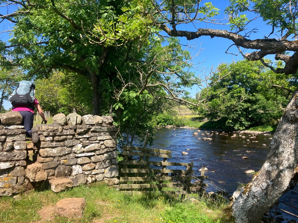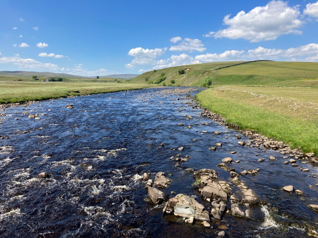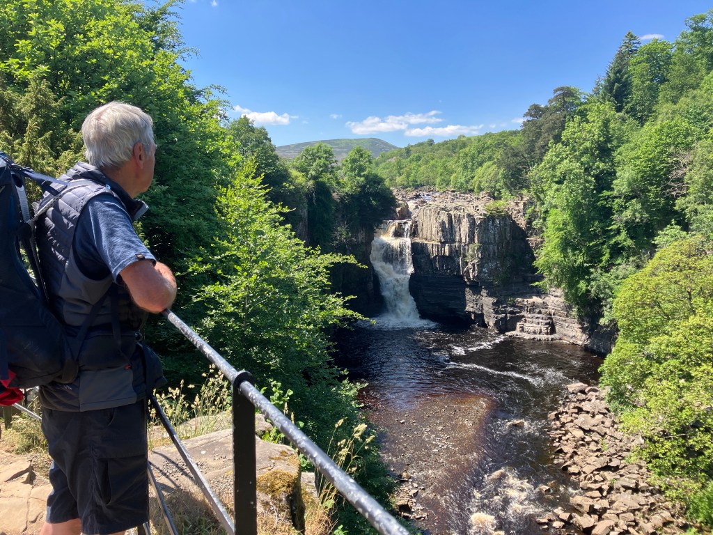 In nature water is king, it rules, defines and discards all it meets over eons of spectacular triumph, it’s persistence is inexorable. It eats mountains and carves deep valleys through dense rock it previously laid down. It changes everything and never changes. It sleeps in lakes, lives in oceans but it’s finest work is wrought in rivers. We walked alongside the River Tees today as it chuckled on its way back home; light sparkling like diamonds on it’s dark surface, slithering and tumbling around the rocks it had planted. The beauty of the place even slowed Carol down and I was able to match her pace for once. We saw a cloud today and watched it wander across the sky like it was lost, momentarily hiding the sun and casting its kind shadow onto us. Walking was gentle, only ten miles, but the air was abuzz around us for most of the time. Looking at water made me reflect.