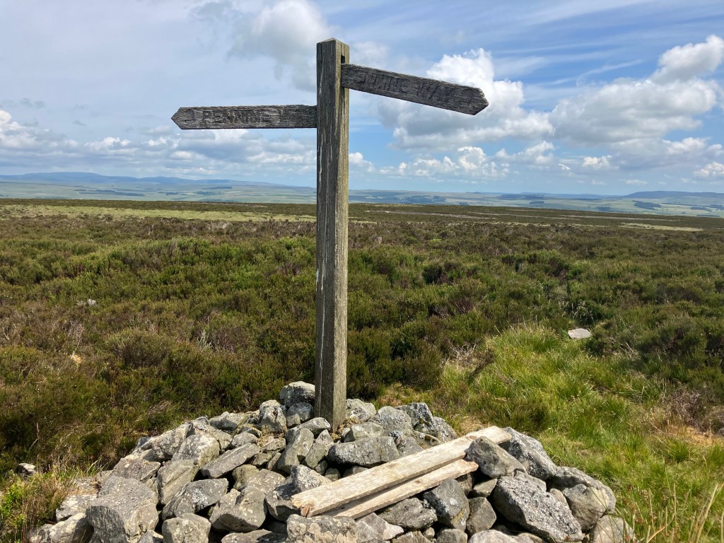 It was a long climb up out of Bellingham, but as we did the horizon widened and we found ourselves on good paths walking across wild moorland again. We met some others walking the Pennine Way North but they quickly overtook us. Later, while we were stopped for a lunch break a Park Warden named Pat, who was out to plant a camera in a nest of two Harriers in the area, came across to chat (and check that I could get back up again). He has a fascinating job and we enjoyed chatting together. He told us about the Spine Race that was currently taking place where some people get along the full 268 miles of the Pennine Way in just over 70 hours! Gosh! I thought, we’ve taken over 70 hours already and there’s still nearly thirty miles to go. He explained that they spend a total of only about four hours sleeping in a bag along the way. Then I realised our mistake, we’d actually spent just over 150 hours sleeping on our sprint along the Spine. He identified for me the small brown bird that had been popping up out of the grass tufts and hovering in the air around us as we’d been walking the moors over the last couple of weeks – ‘Meadow Pipits’. They behave a bit like ‘skylarks’ but are smaller and less noisy. (The unexpected guest at lunch is often fascinating company). We eventually left the moor with its distant views of Scotland ahead of us and were tramping along a monotonous wide gravel path through Resedale Forest used by logging trucks. The day concluded with pleasant banter at dinner among fellow walkers who’d overtaken us on the Pennine Way today, also staying at the Forest Inn. Our last night in England!