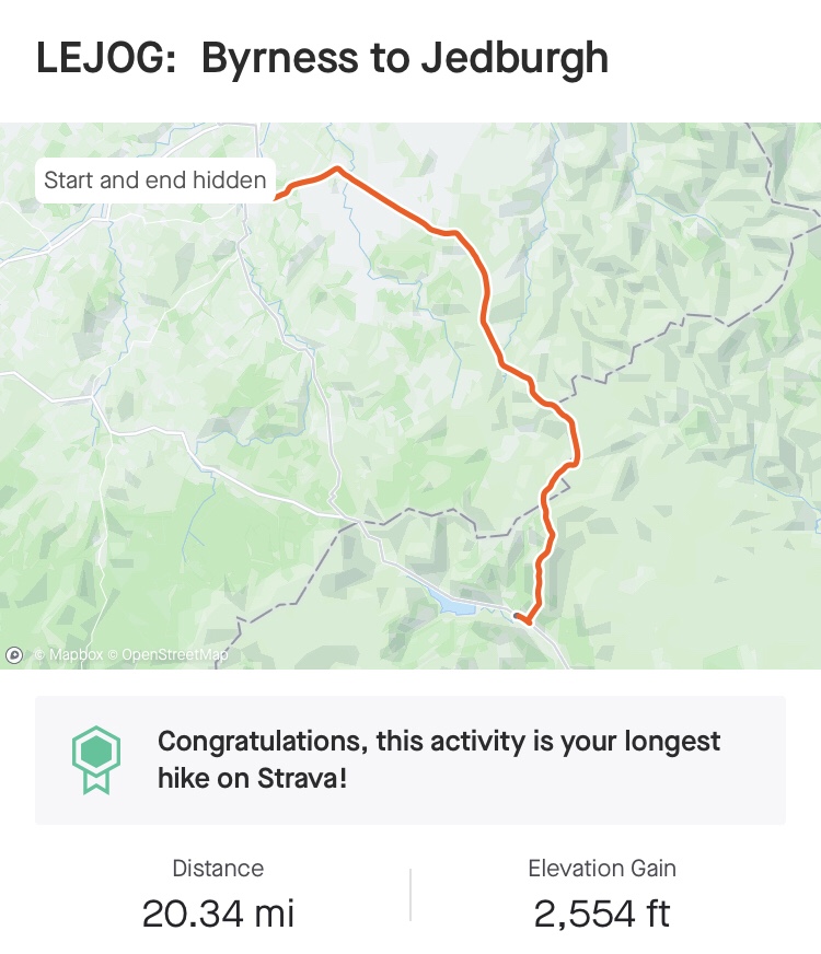 What a day! Today is a milestone day: my longest walk since I was a Girl Guide in the 1960s; we have crossed the border into Scotland; we have completed two thirds of our long walk – and we are both totally exhausted!