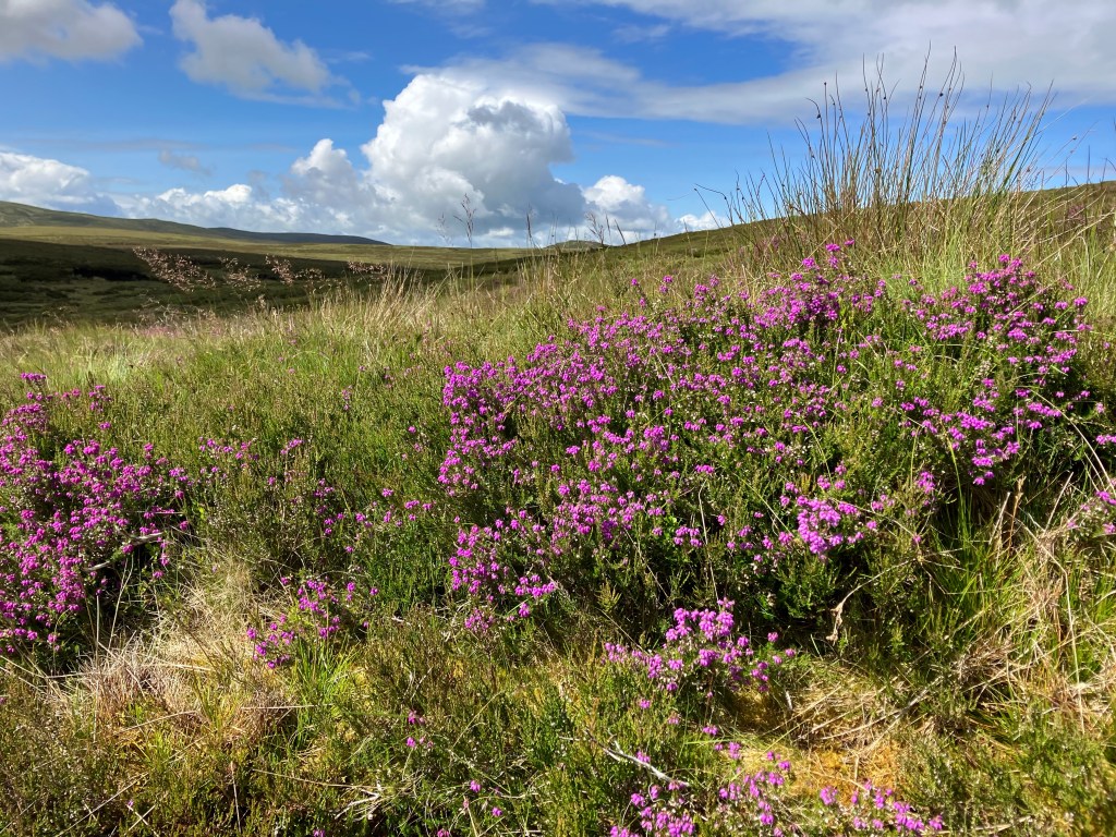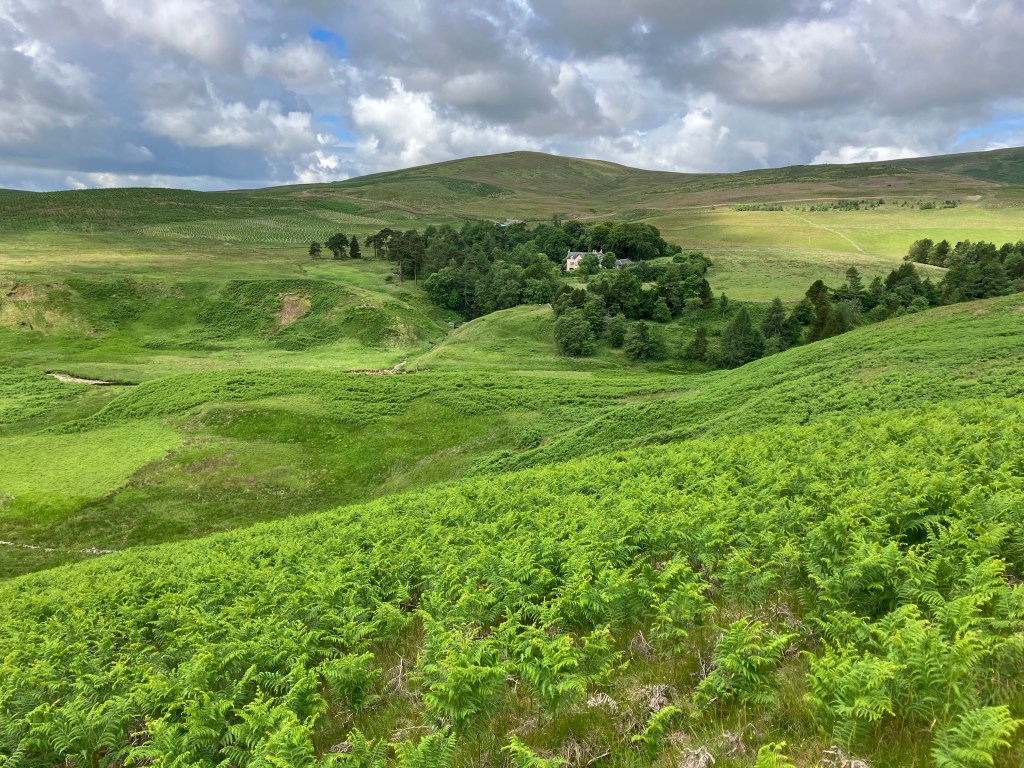 Carol and I put on our underwater walking gear and headed out into the sunshine on The Old Drovers Trail again – the weatherman on TV persuaded us, but it didn’t rain all day. We were soon treading paths over hills of ferns and where islands of blossoming heather emerged between thick tufts of sedge. It was a continuous but gentle gradient to the high point where we could look down into the flat lowland plain before us, promising us some days of easy walking ahead. On the winding descent we met a grey bearded gentleman walking towards us. He smiled and remarked “what are you two doing out here?”. We’re on our way from .. “you’ve got some serious bags, I like to travel light” he interrupted, pointing to a small mountain on his back with rolled up stuff on the top and more rolled up stuff on the bottom. “I’ve enough in here to last me four days!” He had maps sticking out of every pocket and after Carol explaining we were on our way to East Calder he promptly informed us that it was a long way to go and meant having to walk along a busy main road as there were no paths to Calder. Carol showed him her Komoot route and he nodded his head from side to side and said there are no footpaths on the other side of the main road and he pulled out his phone with Ordnance Survey details to prove it. “If it’s not on the Ordnance Survey Map, it’s not there”, he assured us. The conversation continued and things got grimmer: the school summer break has begun so getting accommodation along the West Highland Way will be impossible. I thought to myself, another weather man. We got to the road where we did see a path on the opposite side leading up to what appeared to be a wooden seat and a figure sitting on it. His name was Hamish Clark, retired and a volunteer inspecting path furniture (stiles, marker posts and bridges etc). The seat turned out to be a small bridge that served a dual purpose, as Hamish put it. Hamish was not a weatherman, he was a Sage. We asked him about the path to East Calder. He’s one of those people who think quietly for about a minute before answering a question, but when we left him we knew exactly the route to take and what to expect along the way. He also warned us about rain tomorrow, so he may have been a weatherman after all.