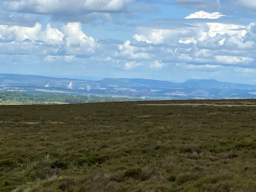 We decided to put on our waterproofs before leaving West Linton, as rain was forecast once again. However it remained dry all day, and the sun managed to show its face from time to time! Once again we were following the Cross Borders Drove Road, with a long, steady climb uphill, passing Baddingsgale Reservoir, up to Cauldstane Slap. As we descended from the pass, we had clear views of Edinburgh: the Firth of Forth Bridges and Arthur’s Seat. The Lowlands were spread before us and our route to East Calder was straight forward, until we found our path through the village closed because of extensive building works, so were faced with a long detour.