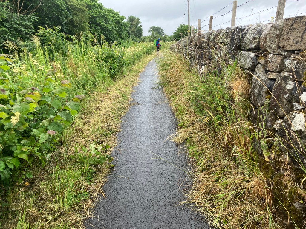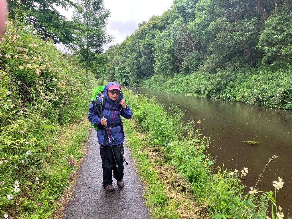Our walk today was relatively flat, which we welcomed after the recent hills. We set off through parkland and along cycle paths to the village of Uphall, where we stopped for a welcome coffee and cake. When we emerged from the cafe, it was raining heavily and continued to do so for the rest of our walk. We decided to follow the road , rather than take paths across fields in wet weather. We eventually reached the Union Canal (running from Falkirk to Edinburgh, originally constructed to carry coal to the capital). It was then a very easy walk along the canal path to our accommodation in Linlithgow.