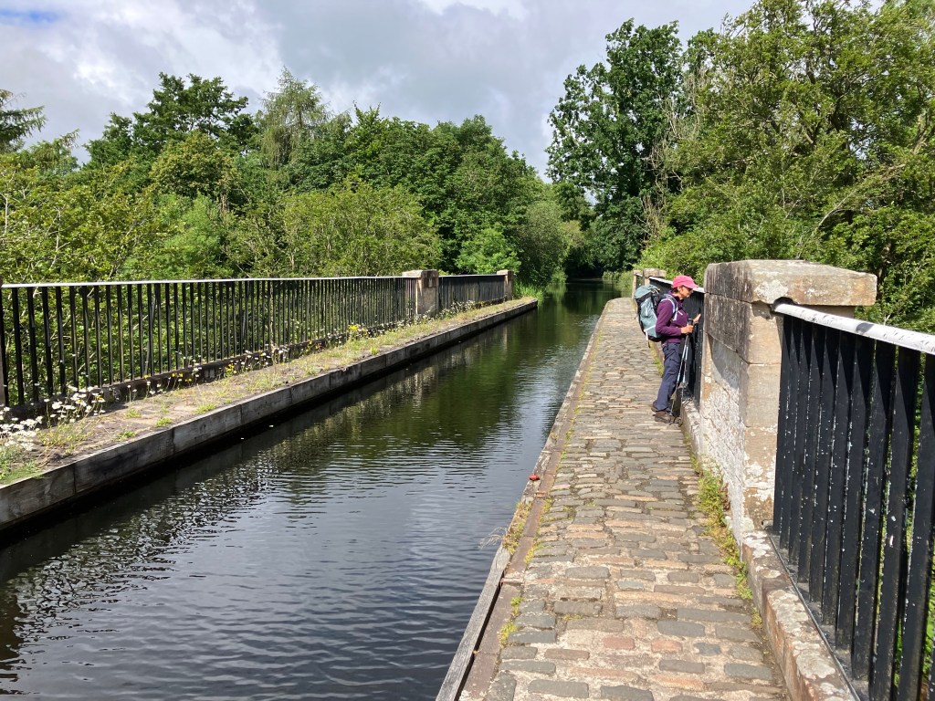 The Union Canal was part of a main artery serving Edinburgh, coal mainly but also a ‘city-link’ to Glasgow from 1822 for 25 years, until Railway competition overtook it. It’s a clever design following ground contours meaning much fewer locks (locks slows things down a bit) but with some impressive aqueducts to take the canal over river valleys en-route. They are of course a legacy of the Industrial Revolution and were built when steam engines were beginning to displace horse power and telegraphing using Morse Code was the ‘smart phone’ of its time. Today it’s enjoying retirement as a leisure facility and looking very good on it, probably telling me something too. If water does have memory, what stories it could tell. Walking canal routes is physically easier than over the hills surrounding them but they were designed primarily to get things from one end to the other and that’s increasingly how we feel about them. Of course they are very beautiful with both water and path maintained well, but are now incorporated into urban infrastructure, and like parks, a bit tame. An upside is that they take us through well connected towns and villages, so accommodation is very good.