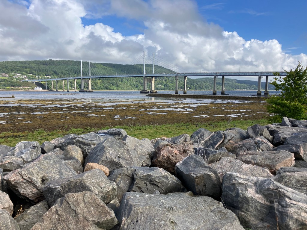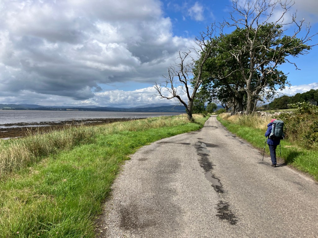 We set out with some enthusiasm, knowing that we were starting the final stage of our journey, the John o’Groats Trail. We left our lodgings, walking along the River Ness before crossing the Kessock Bridge over the Beauly Firth. We then followed the Beauly Firth as far as Milton of Redcastle where we found a delightful picnic spot. So far, we had walked on more tarmac surfaces than we would have liked, but our route then took us on paths through arable farmland and through woodland. We had an unfortunate diversion, when the path chosen by our app proved non existent, and we found ourselves fighting our way through woodland with head-high bracken, before deciding to choose a route along country lanes. We were glad to arrive at our hotel, where we have a lovely room and a bath!