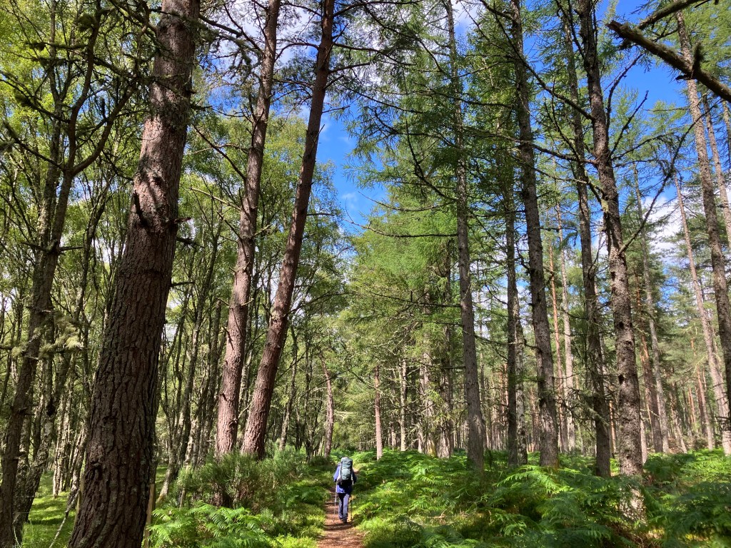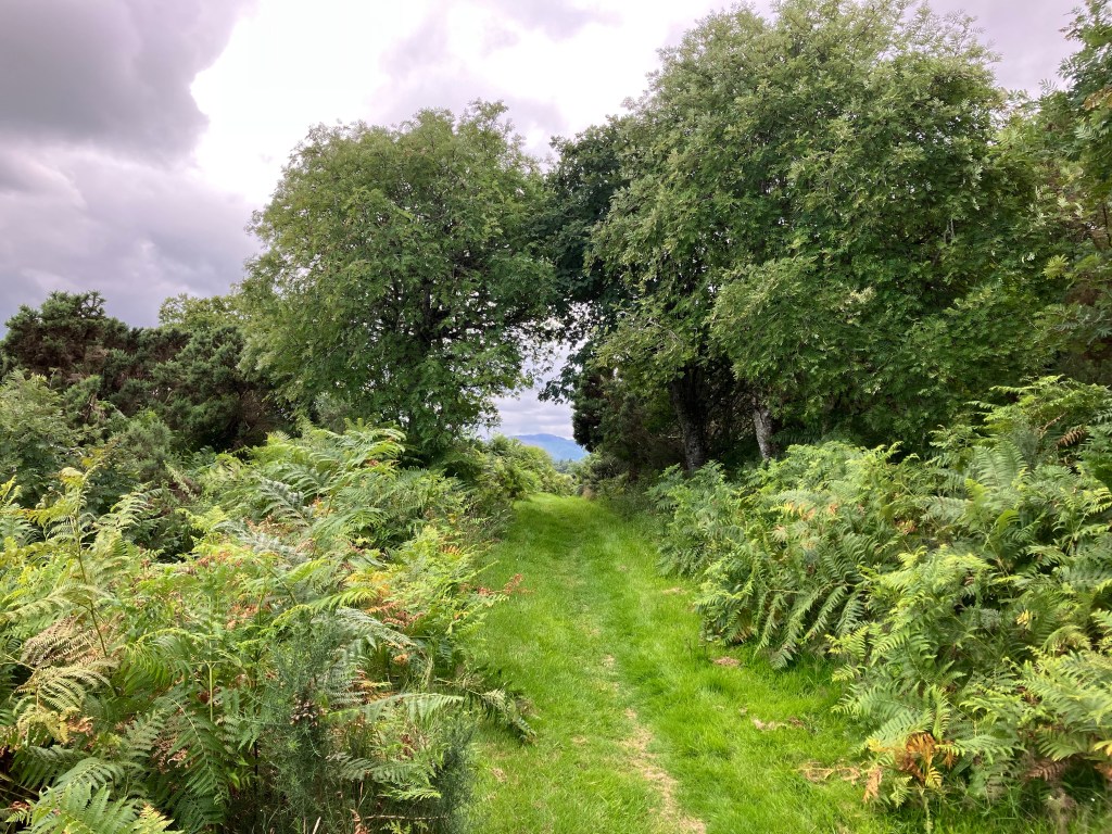 It was a lot further from our digs to the big bridge connecting us to the start of our trek through the most northerly reaches to John o’ Groats. To get onto it we chose to climb over a fence, up a steep grassy / muddy bank, over a locked gate at the top, arriving on the bridge’s east walkway. Quick, unorthodox, illegal and dangerous (quid), but it was on Komoot’s blue line, so I’m outnumbered again. As soon as I had climbed over the gate the cruel wind decided to take my hat for flying lessons. Mainly it was practicing landing and taking off from cars and trucks racing across the bridge in the opposite direction to Carol and Mister Komoot. I was running up and down along the bridge for some time providing unexpected entertainment for motorists, but in the end it only took another quid to get it back again. We walked to the north end of the bridge and carried on along the busy noisy A9 for nearly two miles on pavement before heading off into the quieter countryside. We had all types of walking by the time we stopped for lunch, country lanes, housing estates, woodland paths and mud…. Milton of Redcastle is a beautiful spot on the edge of Beauly Firth where the receding tide had provided lunch for various sea birds at the same time we had stopped for ours. The contrast with the bridge and A9 could not have been greater, raging noise to peace and quiet. We left that idyllic spot and headed on just north of Muir of Ord when we saw it, we really saw it, up close and unmistakeable. Not a stuffed one, not on TV but for real. I’d first seen a picture on the last page of my ‘I Spy British Birds’ book when a much younger, much smaller, better version of myself. I’ve always wanted to see one in the wild, I never thought I would; today, 23rd July 2023 I did! Only a Golden Eagle, not a White-Tailed Eagle, a large adult female Golden Eagle! She appeared from behind a tree no more than thirty feet in front of us soared low in a circle on her majestic wings with its fingers playing the air. Then slowly ascended effortlessly in ever increasing circles to the high grey clouds above us; magnificent! When Komoot took us along a path leading to a drive across the back of somebody’s garden I did have a sense of deja vu. When it took us into a wood with dozens of paths leading everywhere and nowhere, I was more than suspicious. The blue line followed a clear path though, right up to the edge of dense head high ferns and thorn bushes. Was Komoot calling our bluff? We pushed through the tangled green jungle over deep holes in the ground beneath our feet, right up to a sheer twenty foot precipice (house height) and a terrifyingly steep slope at the bottom, which only the sudden drop in tree heights gave us any warning of! I heard Komoot say “Exterminate” in perfect Dalek, but Carol thought it said “continue for fifty feet, then turn right”. Either way, Komoot had taken on a homicidal nature, we turned back and again, Carol parked her dubious friend and found a much friendlier route to our luxury stopover. Phew!