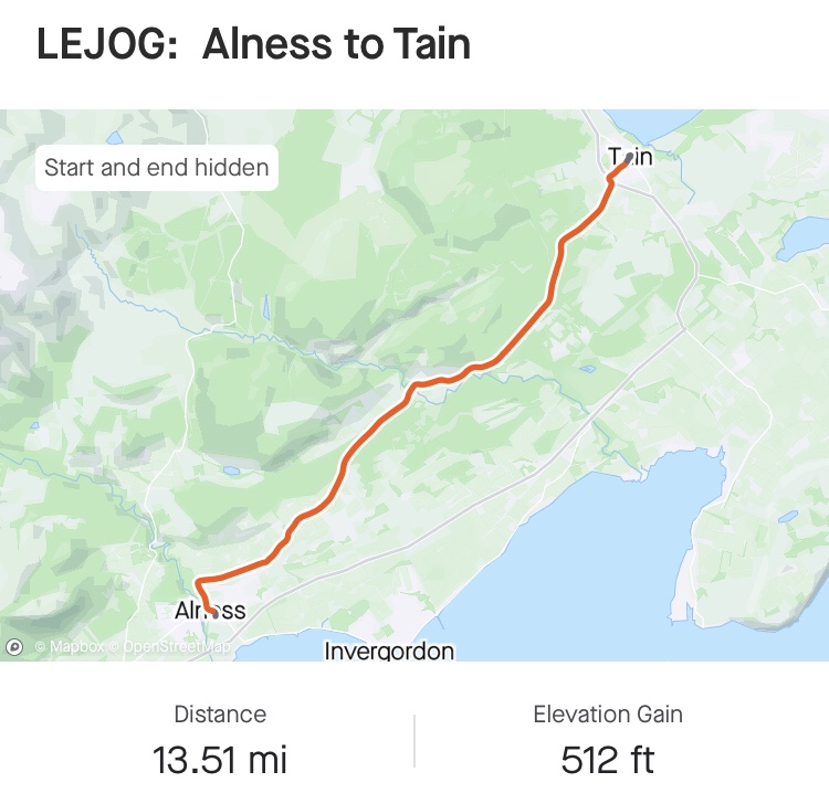 We made good time today, arriving at our destination by 2 pm – not because it was a short distance but because it was easy walking. Leaving Alness, we joined a minor road which took us all the way to Tain, and was relatively flat, walking past fields of wheat, cattle and woodland. Apart from distant views of Cromarty Firth at the beginning we were walking mainly between tree lined verges. This meant that it was a less interesting walk than we have been accustomed to in Scotland. We arrived at our hotel and were upgraded to a large, luxury room with a four poster bed, as I had requested a room with a bath and it was the only one available! I was also able to find a hairdresser and get my hair cut!