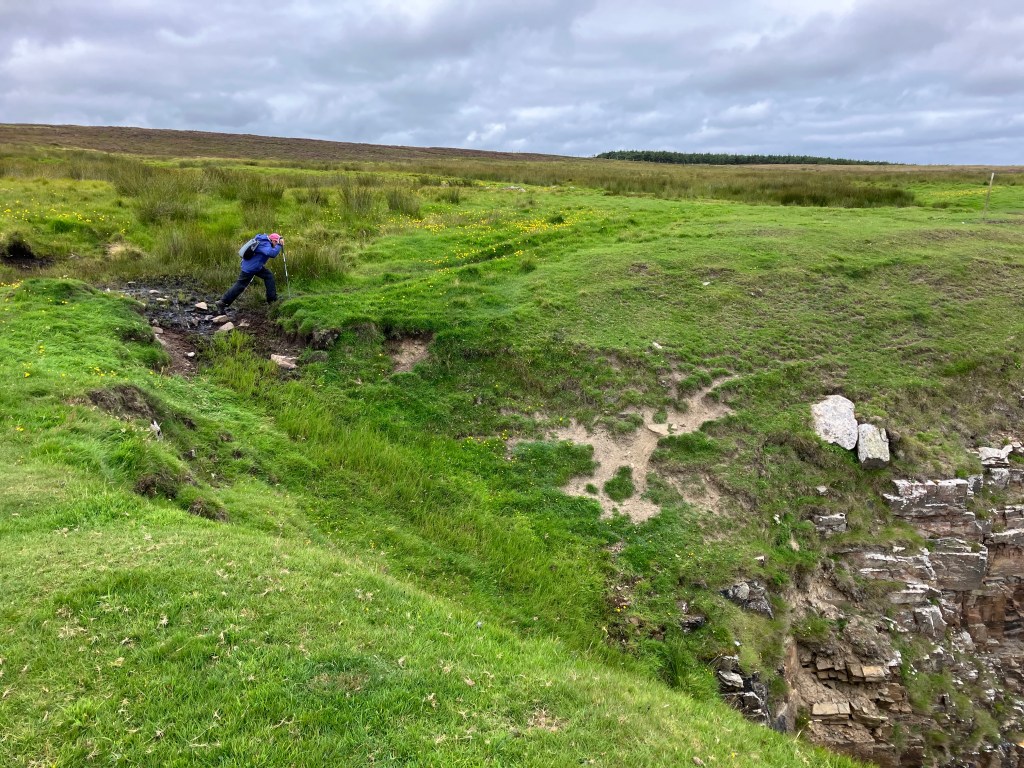 The weather improved today, as did the trail and my enjoyment of it! The path was clear and well marked, with fewer barbed wire fences to cross. There were however numerous Geos (creeks or gullies) to walk round, which almost doubled the distance which we would have taken if following the A99. There was a bitterly cold wind, and it certainly didn’t feel like summer, but we had enough layers and held onto our hats! Much of the route was over moorland at first and was pretty boggy(wet feet again!) but later there were farms and fences once more. We were glad to reach Wick, and the comfort of our hotel.